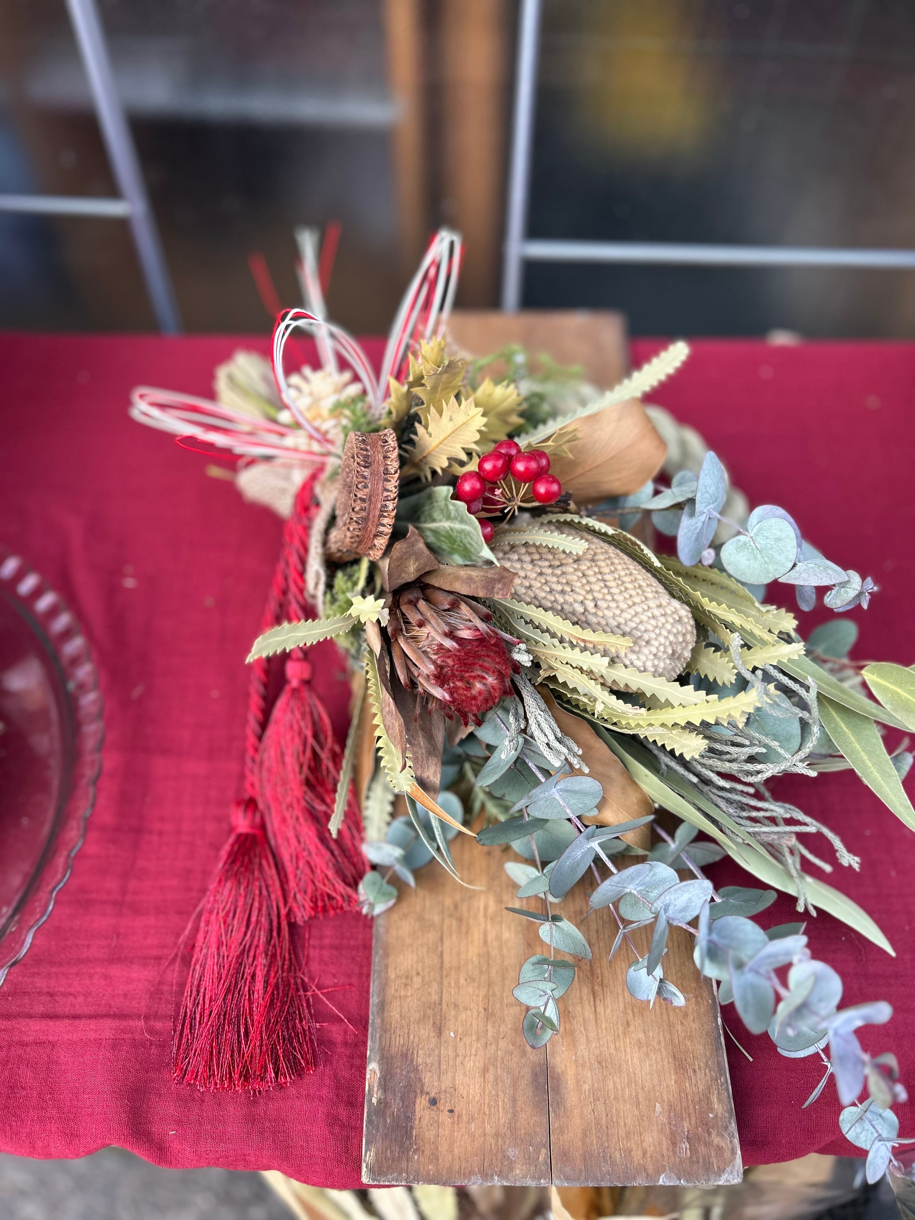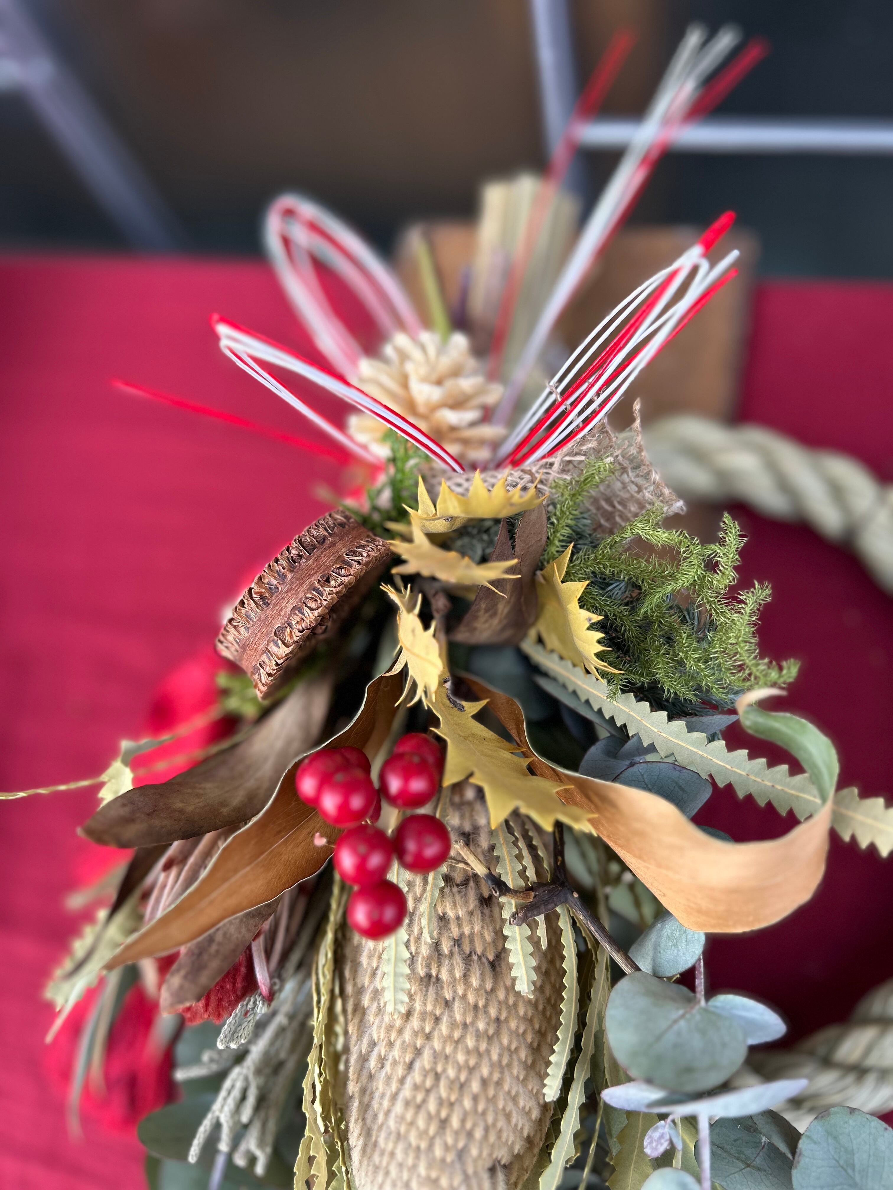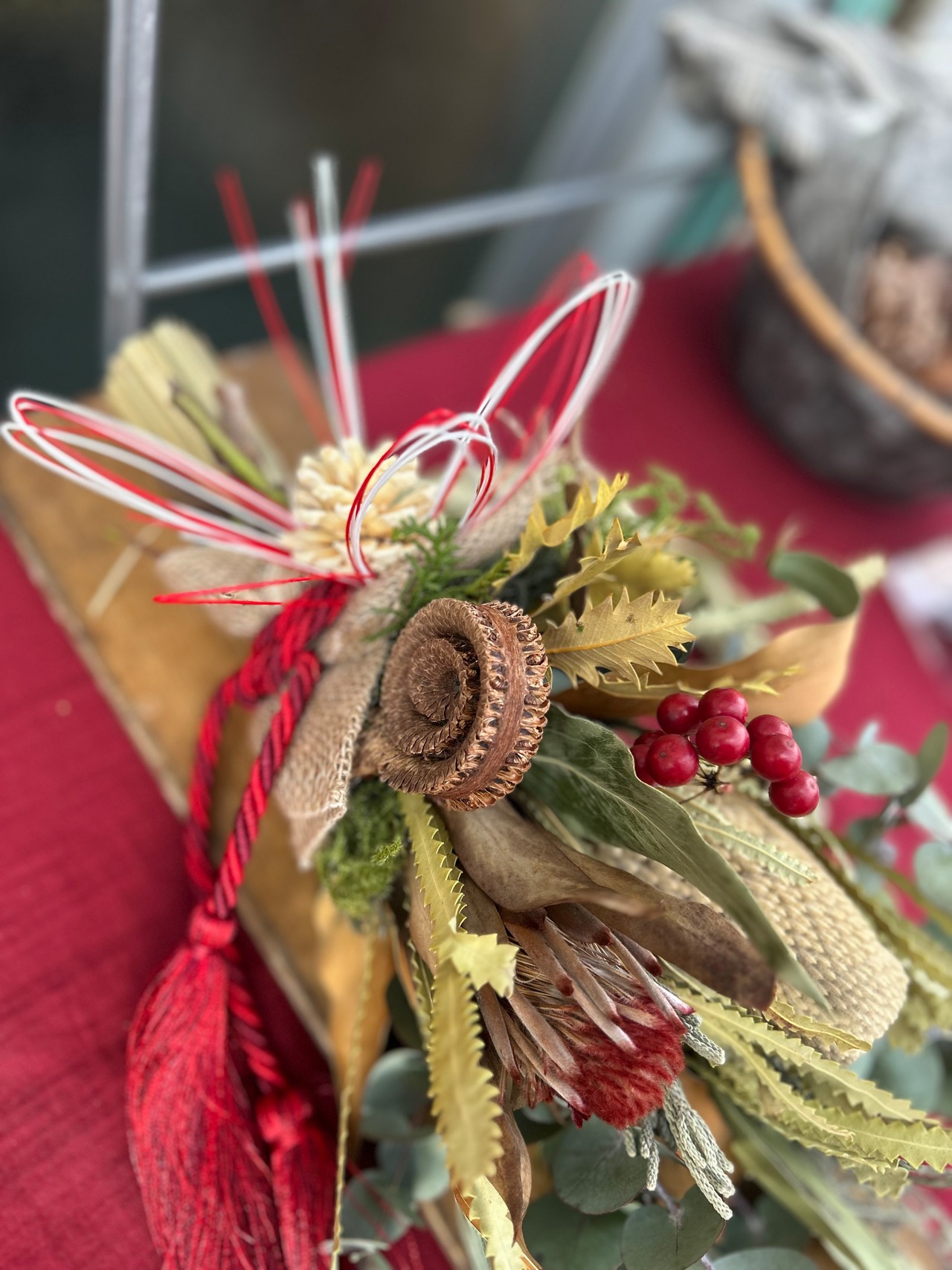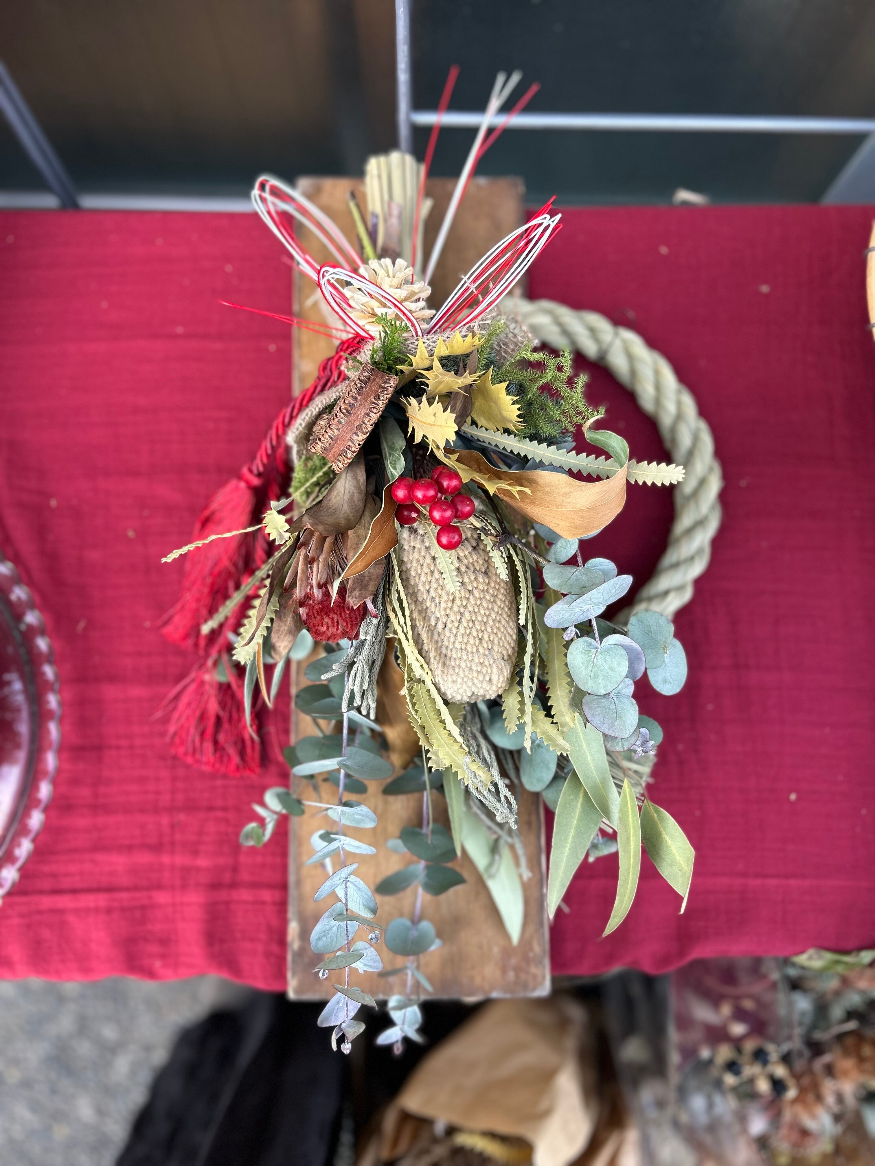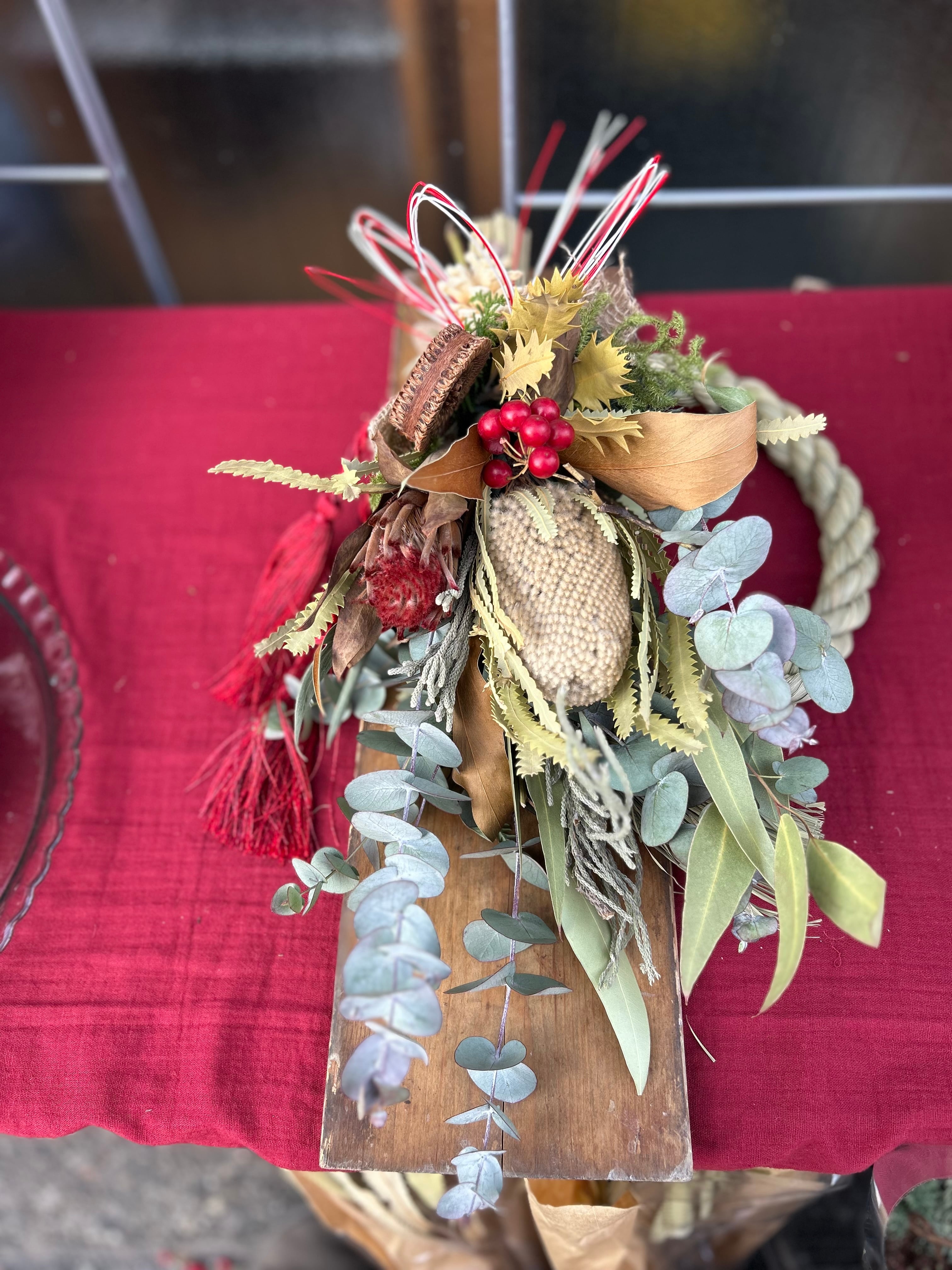 オールシーズンお部屋に飾って欲しいネイティブフラワーのスワッグをしめ縄飾りに仕立てました